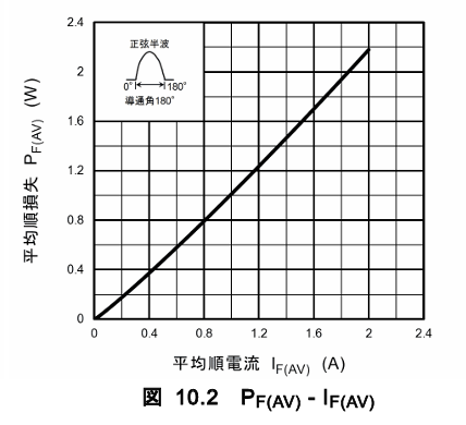 まずは上記データシートよりTj=25℃の時のVFを確認し、ダイオードの損失量を計算しましょう。