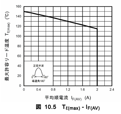 例)平均順電流IF(AV)=1.2Aの場合、最大許容リード温度Tℓ(max)=130℃となる。