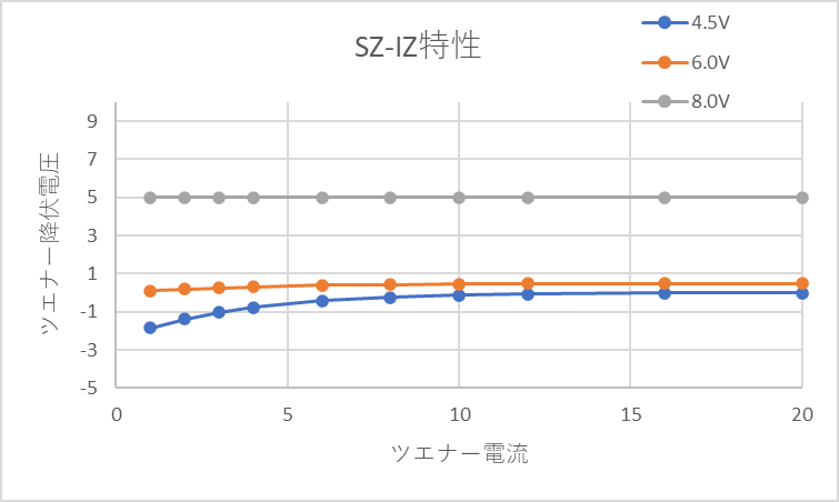 ツェナー電圧が低い(約5V以下)場合: